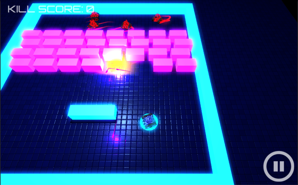 One of the gameplay features of the game is that bullets can bounce off walls, making it possible for the player to shoot around corners. On normal walls the bullets will only bounce off one time and explode on the second collision. On the destructible ‘BreakOut’ blocks the bullets will keep bouncing around until they hit another wall, creating some nice unpredictability and chaos!