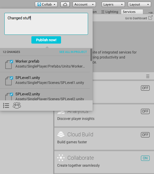 A very nice way to test the multiplayer game mode on the client and host side at the same time is by using Unity’s collaborate service instead of making a build every time.