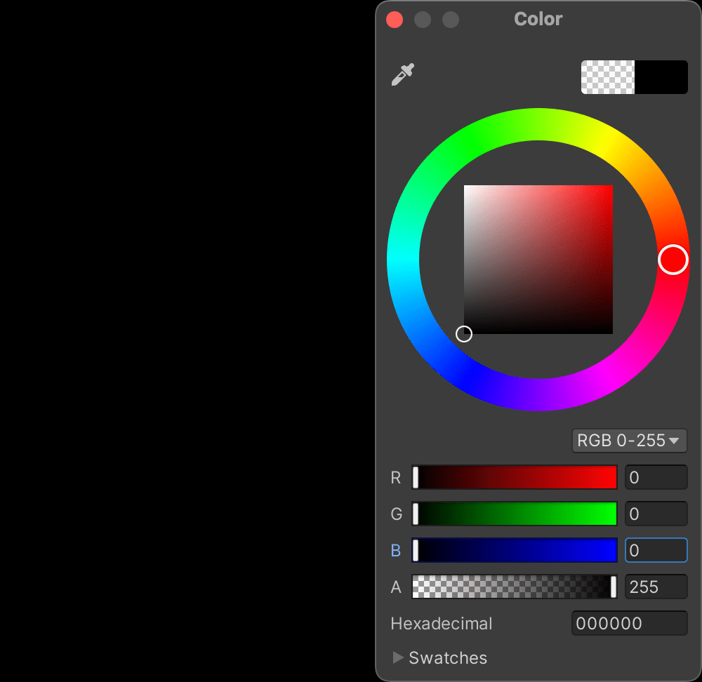 Met alle drie de getallen voor RGB op 0 (0, 0, 0) staat de pixel eigenlijk uit en dat zie je dan als een zwarte pixel op het beeldscherm.