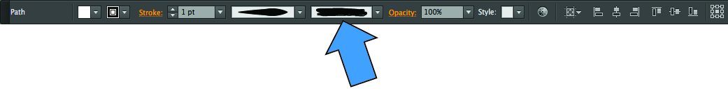 Nu je alle lijnen hebt geselecteerd kun je in éen keer het uiterlijk ervan veranderen door in de Application Bar een Profiel of Penseel definitie in te stellen. Voor het voorbeeld hieronder is een profiel gebruikt wat van dun, naar dik, naar dun gaat en is de lijndikte ingesteld op 22pt: