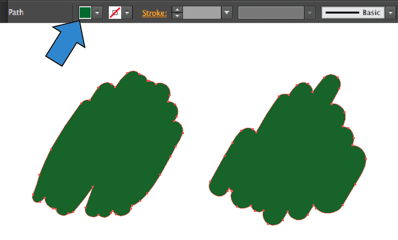 De Blob Brush maakt standaard geen gebruik van de lijnkleur of een penseel definitie maar maakt vlakken die gebruik maken van een vulkleur: