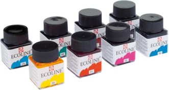 In principe zijn vrijwel alle soorten inkt veilig om als schetsmateriaal te gebruiken, zonder het te hoeven fixeren. Handige inkt om in huis te hebben is gewone Oost-Indische inkt of Ecoline inkt en sepia: