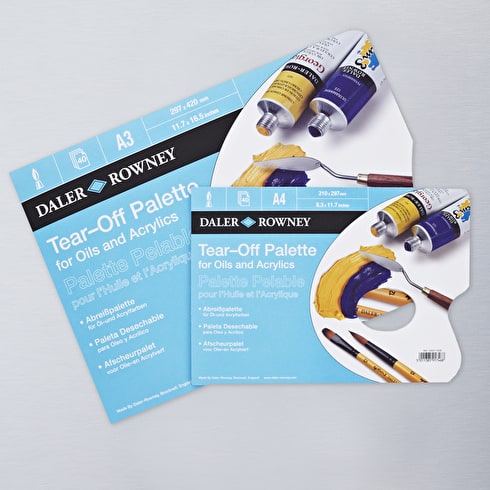 Kunst materialen winkels verkopen ook wegwerp paletten die je van een blok af kunt scheuren, deze kun je tijdens het werken gemakkelijk schoonvegen met een stukje doek en na gebruik weggooien als het vel te erg vervuild is.: