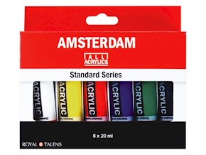 - Basis kleuren studiekwaliteit acrylverf. Bijvoorbeeld van het merk Amsterdam of Galeria.