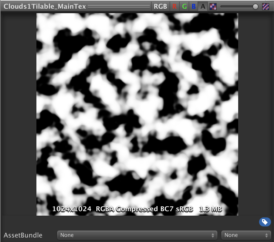 Or if you are going to use your own textures, then what probably works best is using an actual transparent .PNG file instead of a black and white one. This way you won’t get clouds with grey edges but with transparent white edges instead. Make sure to set the Alpha Source to Input Texture Aplha in the import settings and also make sure the texture has an Alpha channel, you can see if it has one in the preview window if you see a white A after RGB :