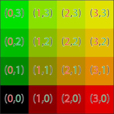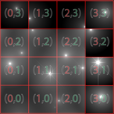 By looking at tiled and then floored UV coordinates we can get the exact column and row indexes of the grid cell that those coordinates are in. For instance if the floored UV coordinates (1.5,1.5) will be (1,1) meaning that the point is in column 1 of row 1…