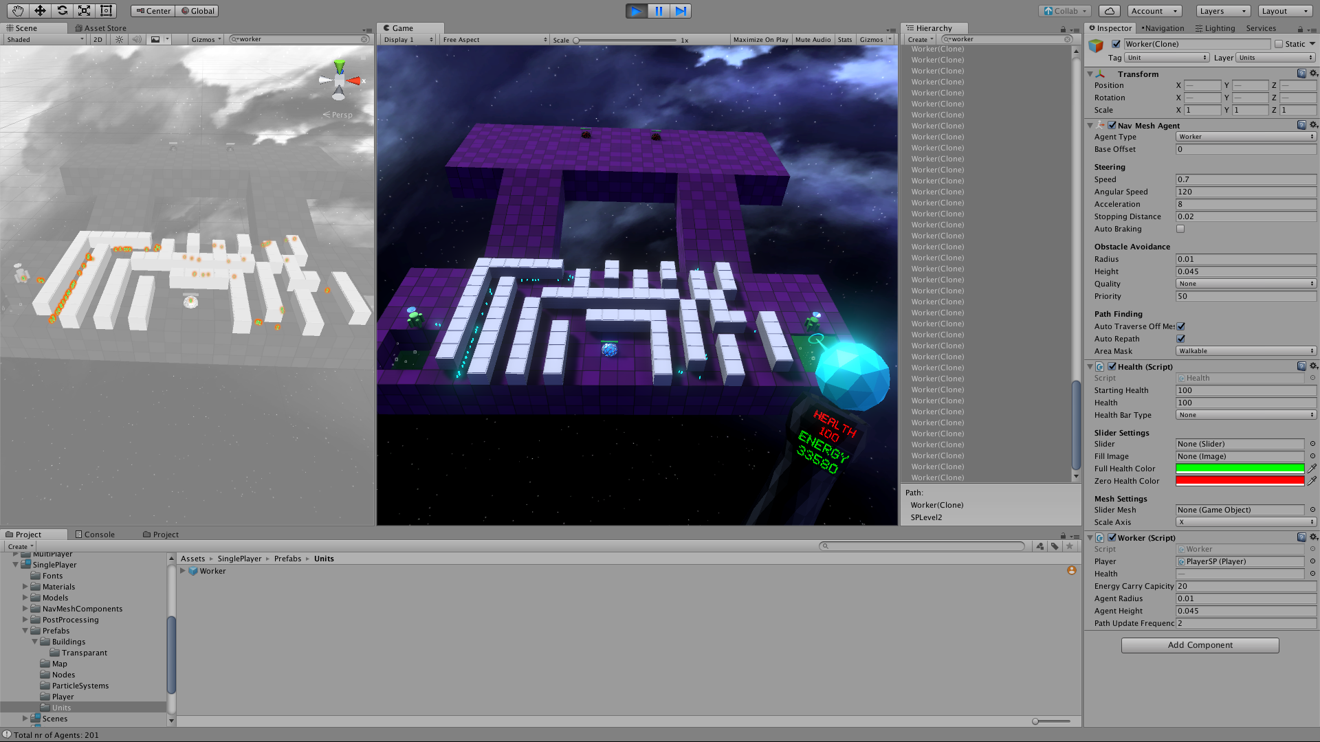 You can also see that most of the game’s units and turrets pathfinding and targeting systems work without any issues and that most of the explosions etcetera have sound effects, which was the easy part but it feels like a small victory and a small cherry on top of a huge cake!