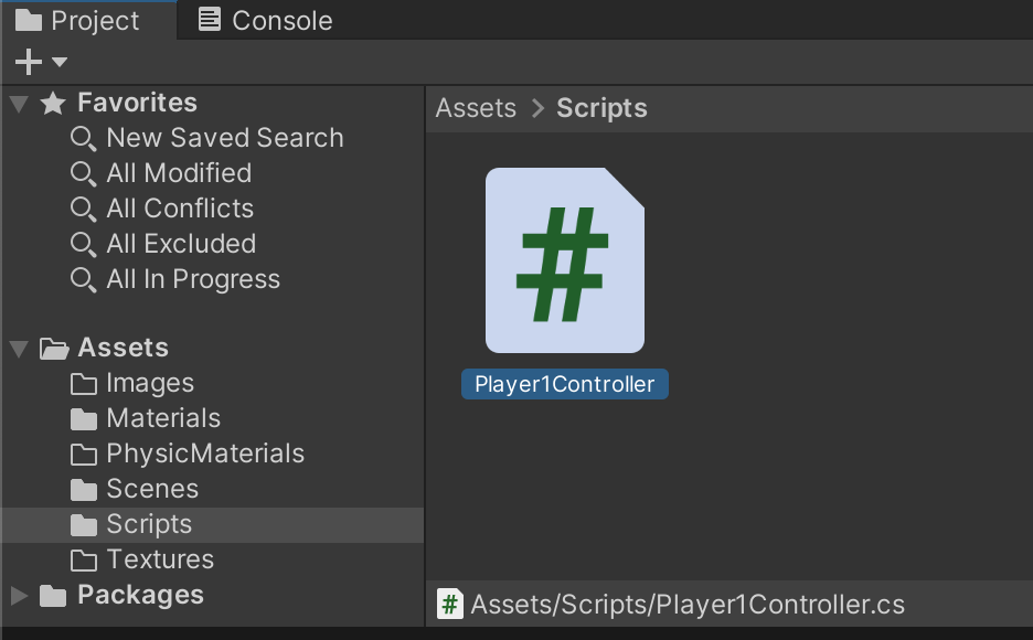 Controleer of je in regel 5 achter ‘public class‘ de naam van je script ziet staan, dus ‘Player1Controller’, zo niet verander dan de naam NewBehaviourScript in Player1Controller want anders krijg je meteen een rode error te zien in de Console view:
